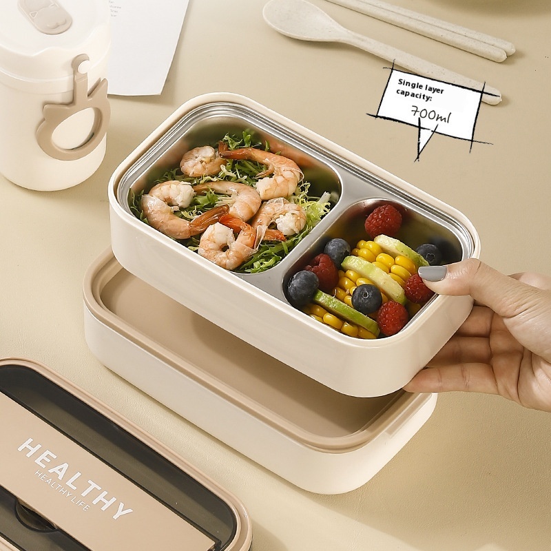 304 Stainless Steel Lunch Box Office Worker Large Capacity Portable Lunch Box Food Grade Student Double Layerulation Lunch Box