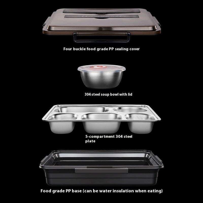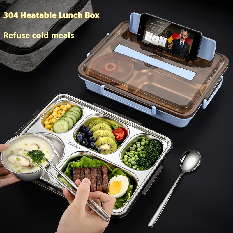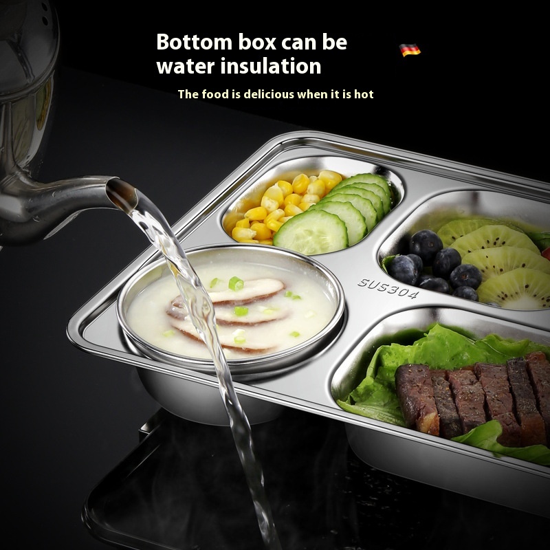 304 Stainless Steel Compartmentulation Lunch Box Office Worker Square Portable Lunch Box Student Lunch Box Microwave Lunch Box