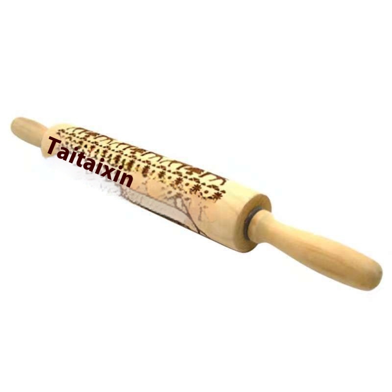 Christmas Elk Printed Rolling Pin Beech Wood Laser Engraving Embossed Rolling Pin Cookies Rolling Pin