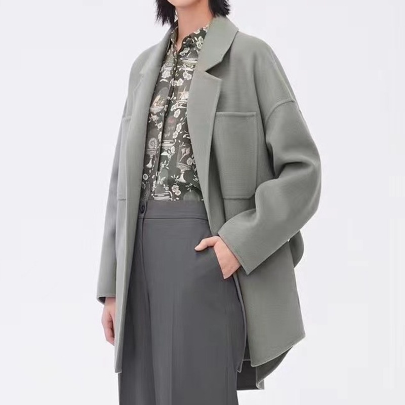 Xiaohe's Bigs!AHand-length Double-faced Wool Coat For Women,Hand-sewn Silk Wool Double-faced Wool Lapel Coat