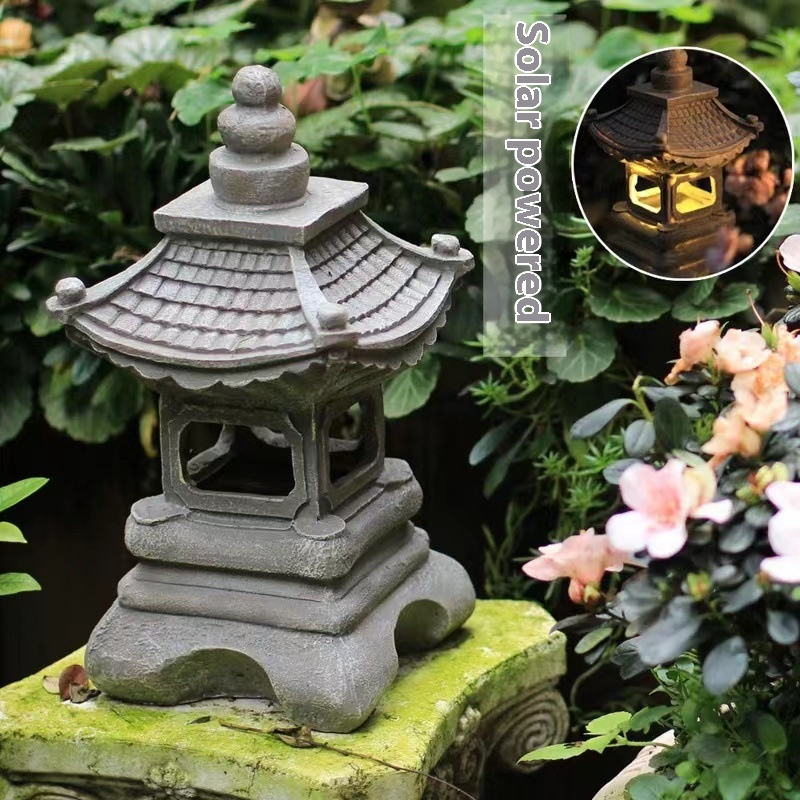 Solar Stone Tower Outdoor Garden Light Japanese Palace Lantern Zen Garden Landscape Resin Garden Ornaments