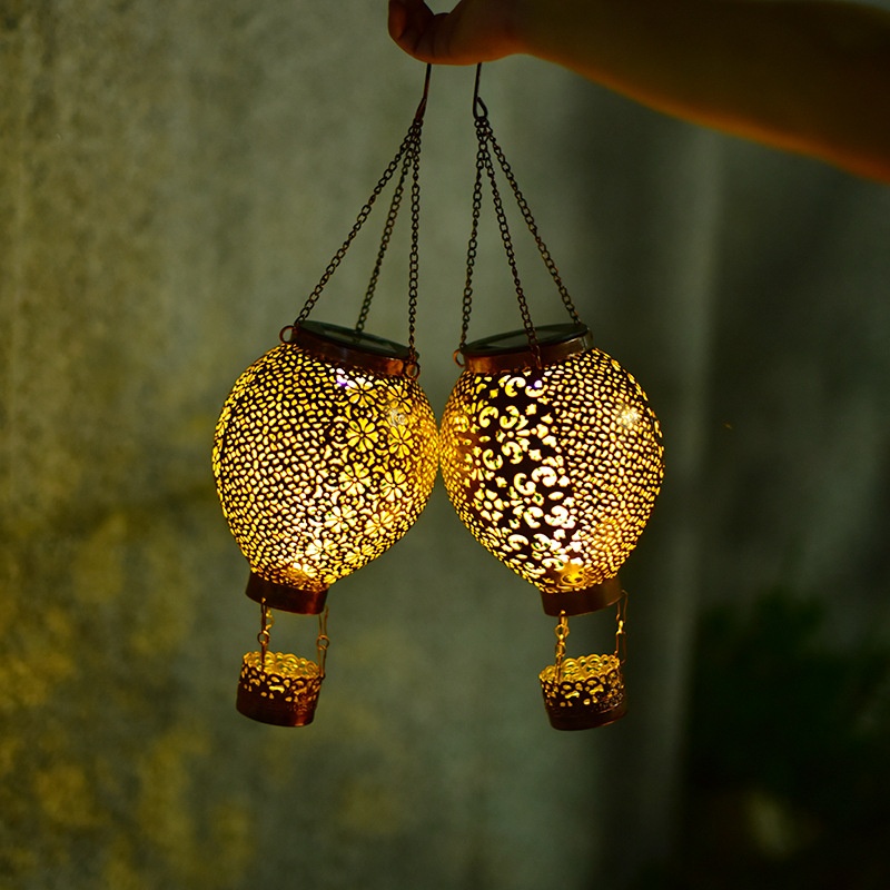 Outdoor Solar Retro Palace Lantern Garden Portable Lantern Garden Decoration Hollow Projection Lantern