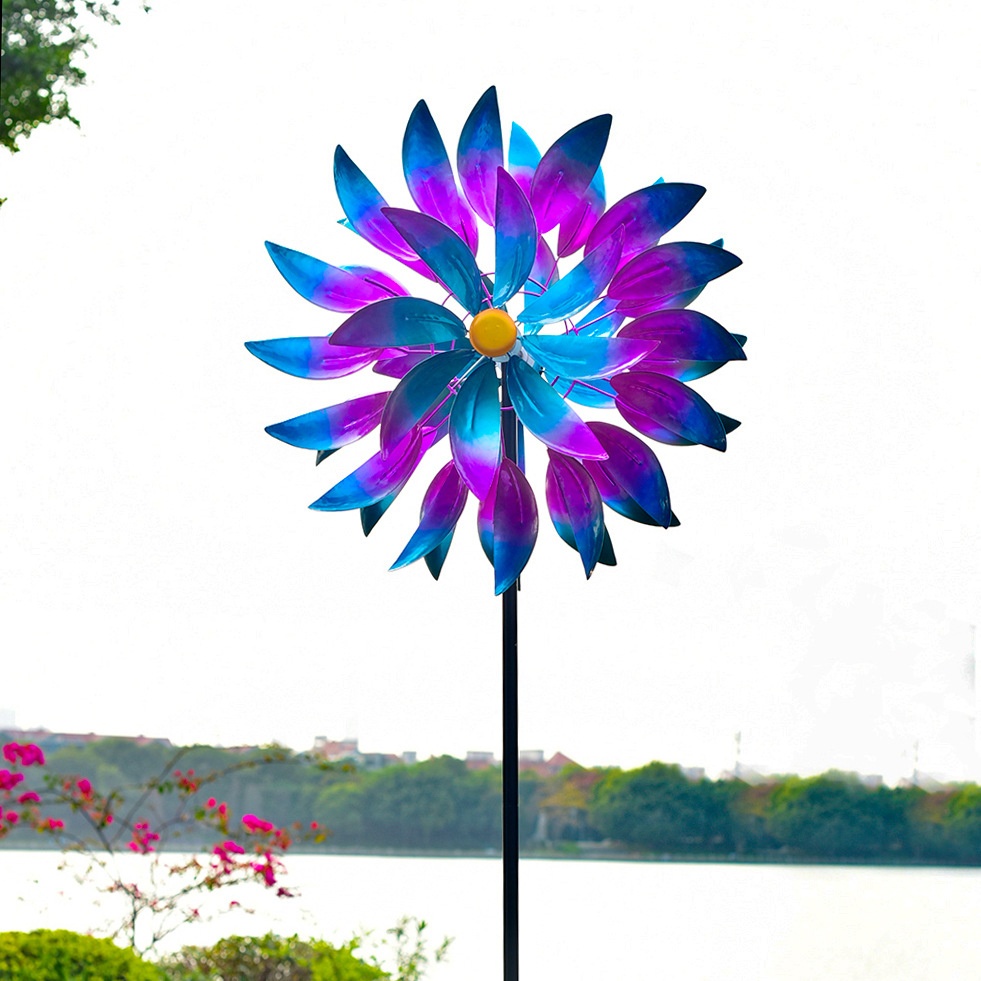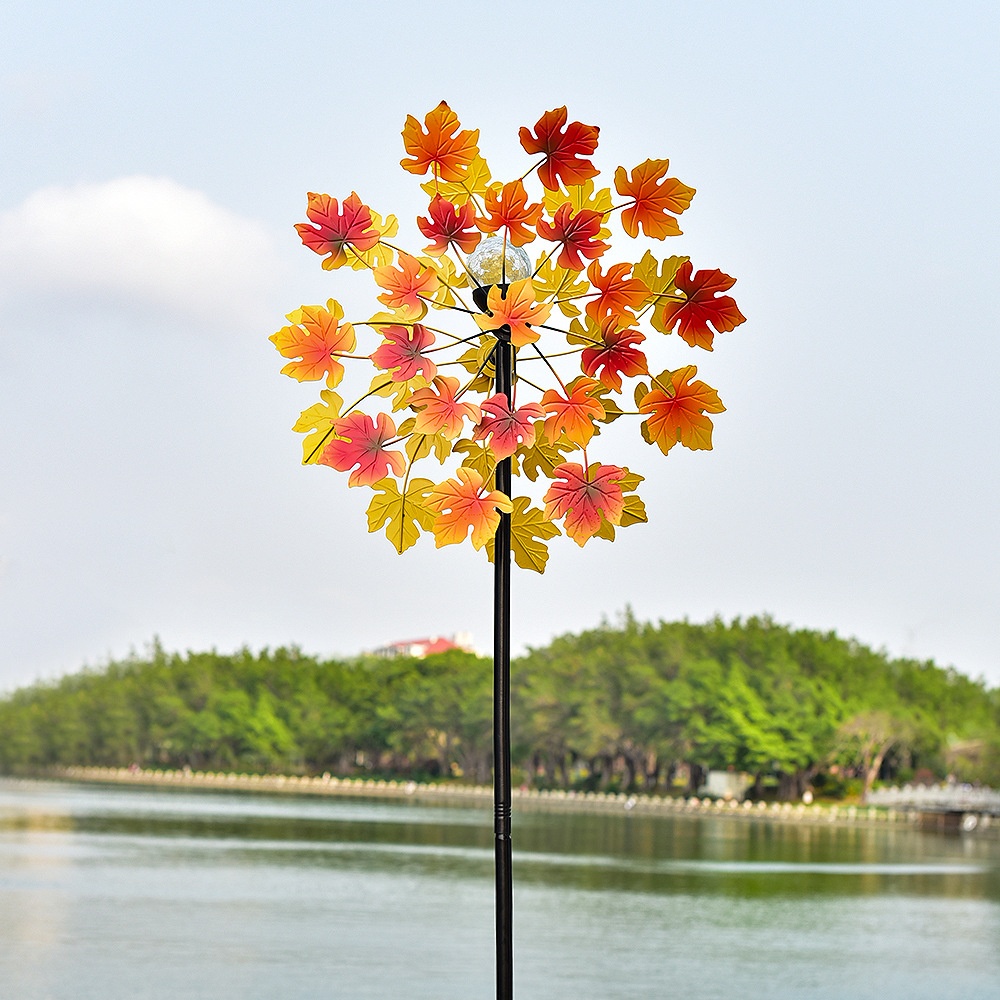 Solar Garden Light Outdoor Iron Double-sided Maple Leaf Rotating Windmill Outdoor Garden Villa Decoration