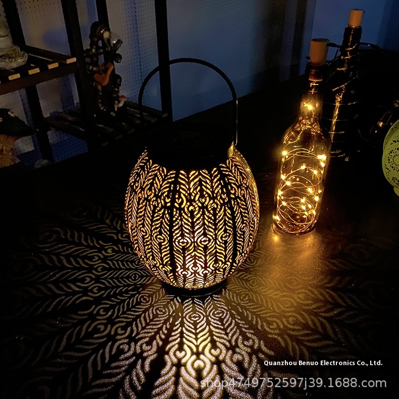 Solar Iron Lamp Outdoor Courtyard Lawn Hollow Villa Projection Lamp Outdoor Garden Landscape Decorative Lamp