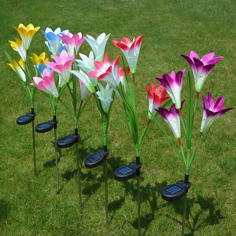 Outdoor Garden Decoration LEDGround Plug Artificial Flower Lawn Lamp Ground Plug Lamp Solar Lily Lamp