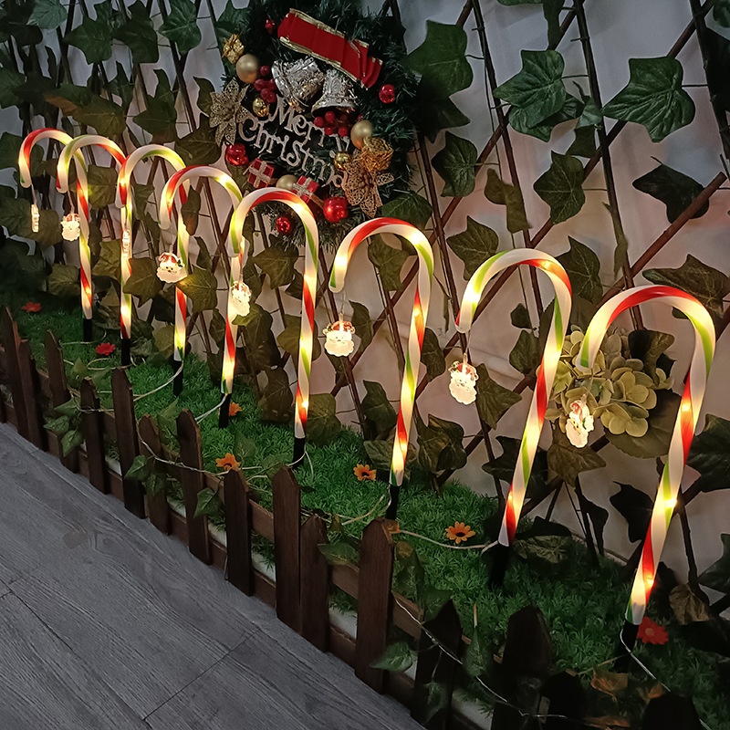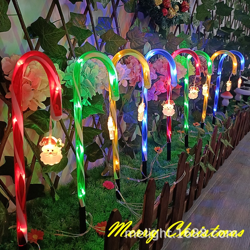 Three-color Solar Santa Claus Cane Star Snowflake Umbrella Handle Candy Outdoor LEDLawn Light
