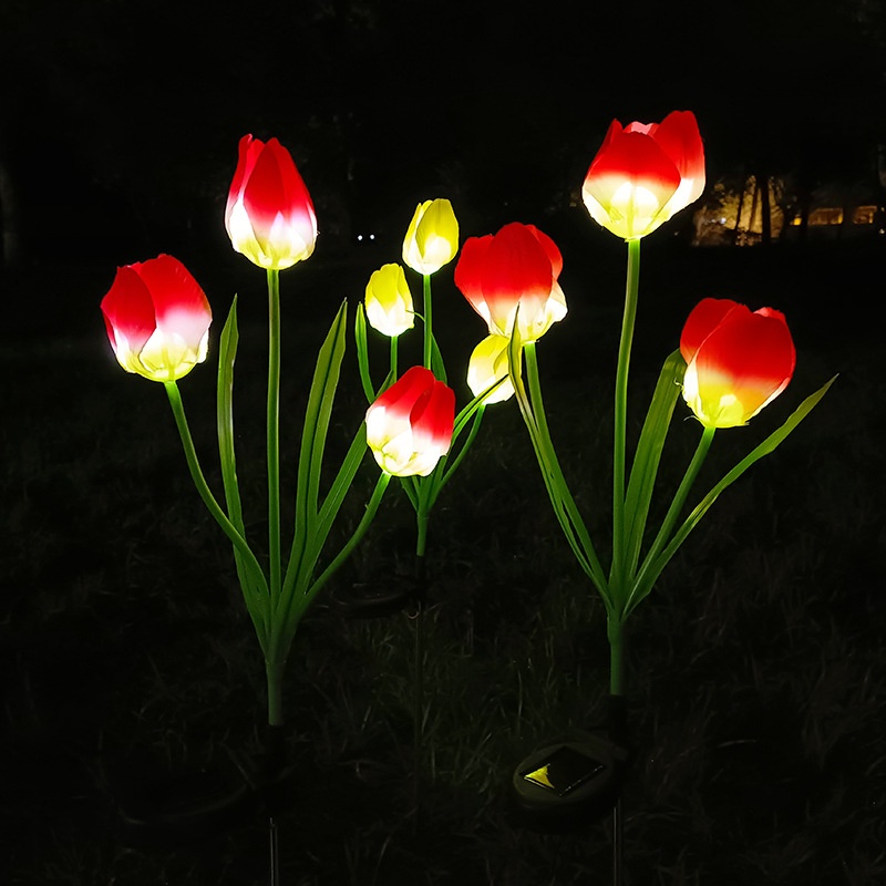 3-head Solar Tulip Simulation Flower Lantern LEDLamp Outdoor Courtyard Lawn Garden Atmosphere Decoration Lamp