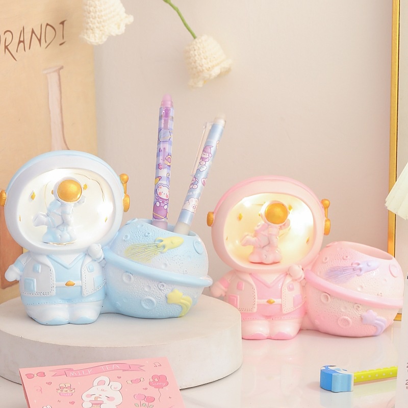 Astronaut Pen Holder Night Light Desktop Organizer Storage Ornament