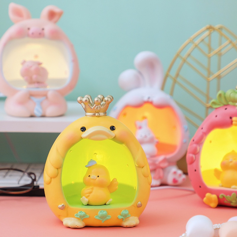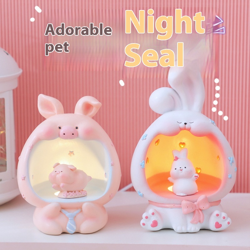 Cartoon Cute Pet USBNight Light Creative Bedroom Table Lamp Resin Crafts Decorative Atmosphere Lamp Female Birthday Gift