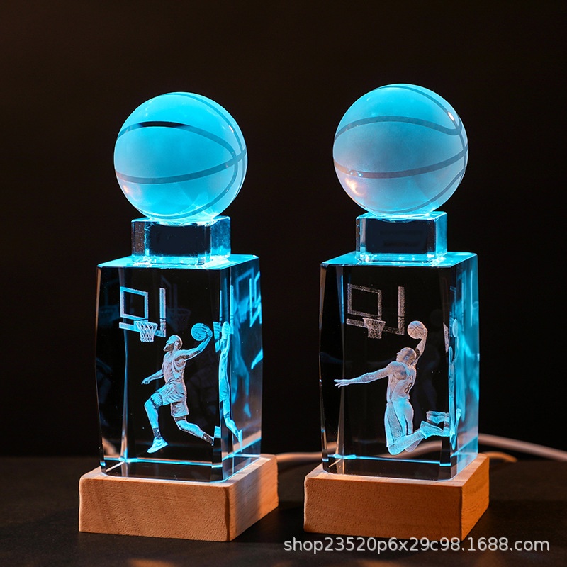 Crystal Engraved NBAKobe Souvenir Basketball Star Hand-made Desktop Luminous Night Light Ornaments