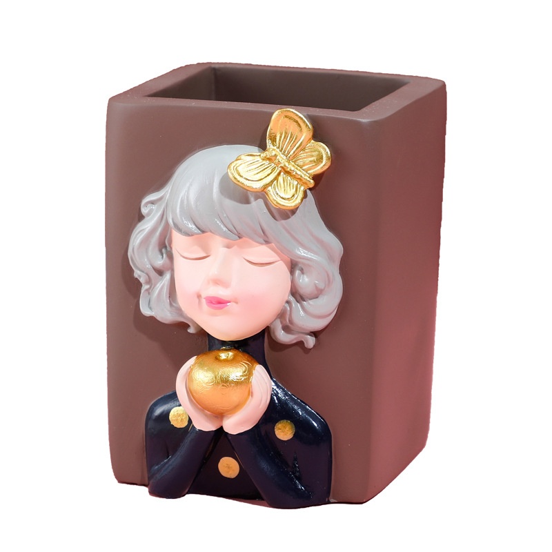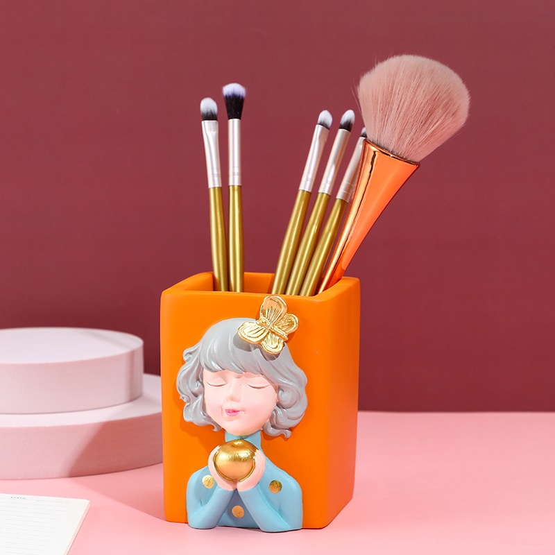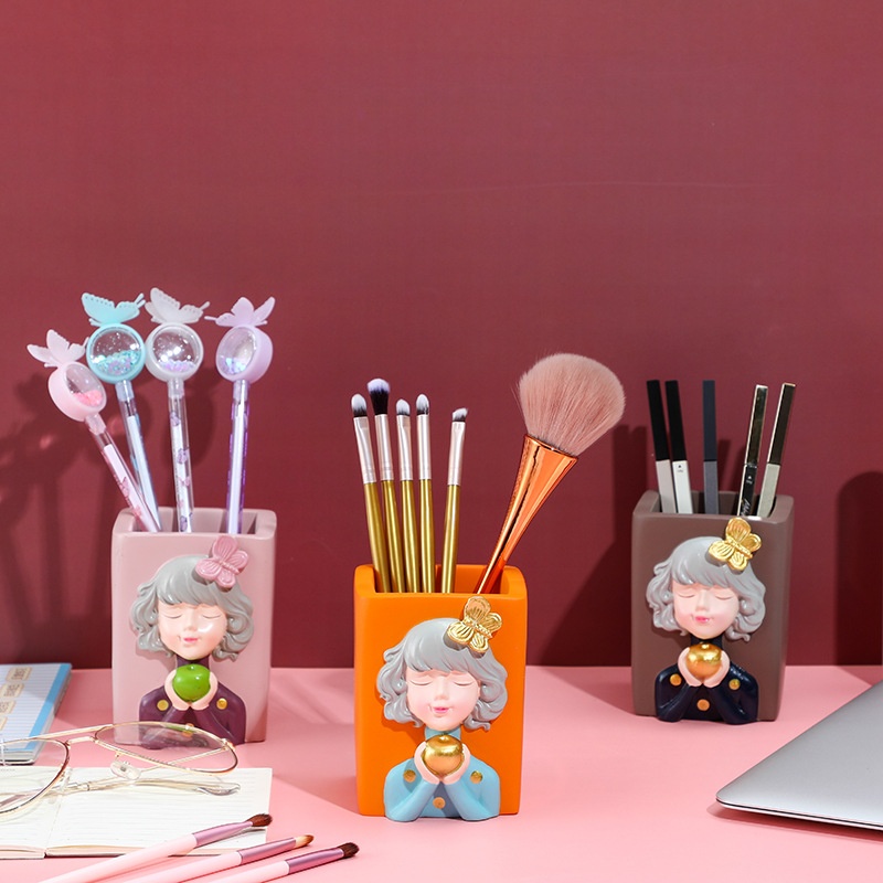 Cute Girl Pen Holder Desktop Ornaments Home Office Storage Bedroom Makeup Brush Multifunctional Creative Gift