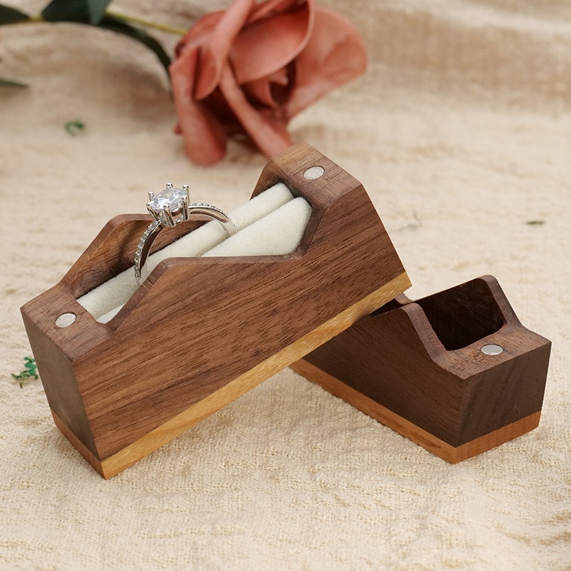 Black Walnut Ring Box Proposal Ceremony Portable Ring Storage Gift Box Couple Ring Box Diamond Ring Box Supports DIYEngraving