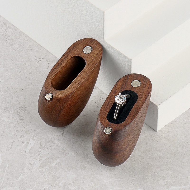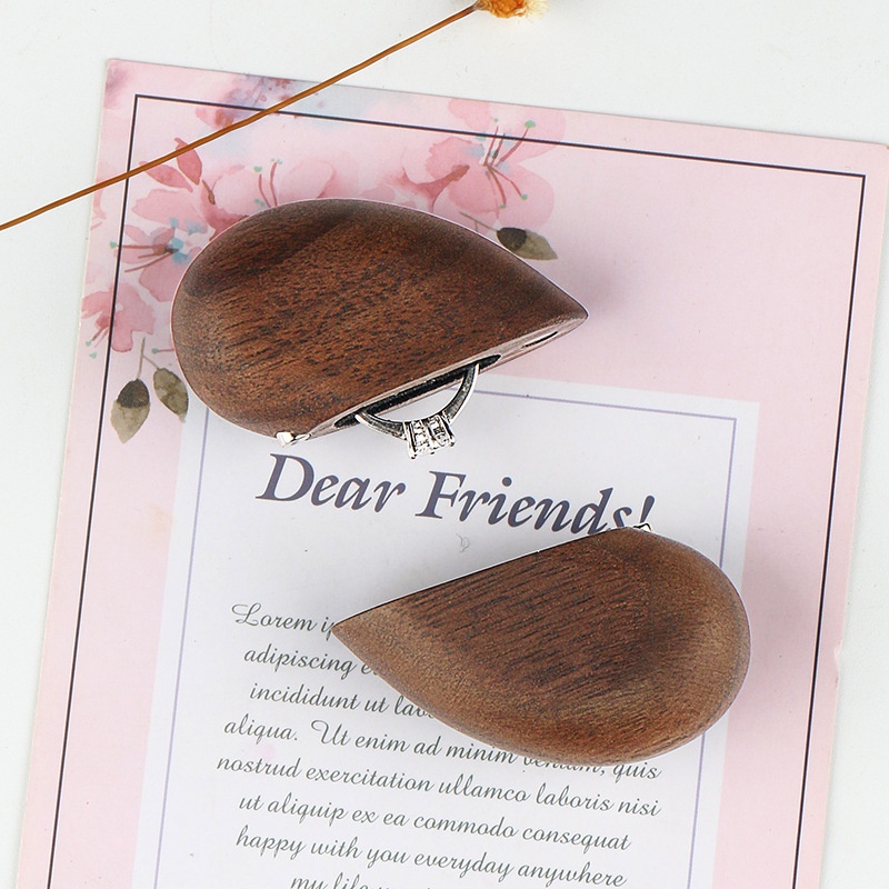 Creative Black Walnut Heart-shaped Ring Box Solid Wood Retro Peach Heart Ring Storage Box Proposal Wedding Ring Box Diamond Ring Box