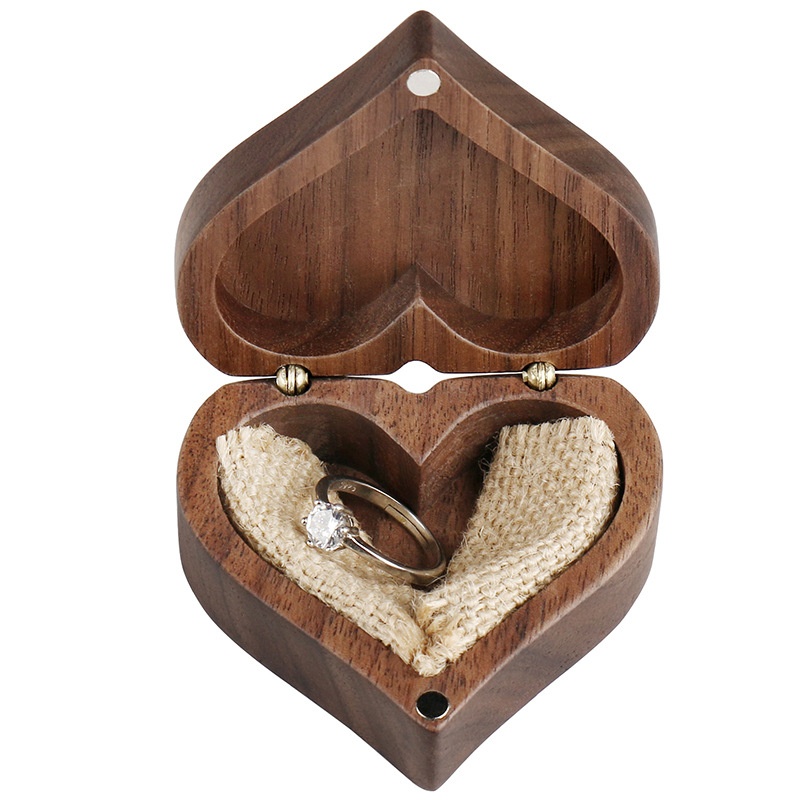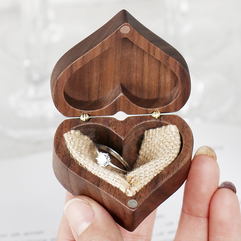 Creative Jewelry Box Wooden Engagement Heart-shaped Ring Necklace Storage Box Walnut Ring Box