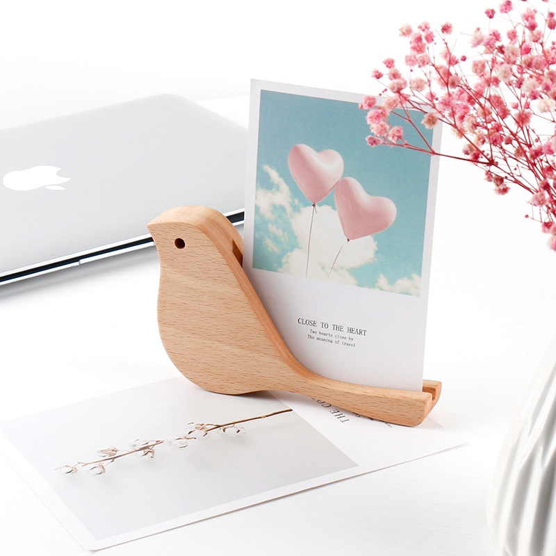 Direct Sale Wooden Creative Bird Shape Calendar Stand Desktop Note Message Postcard Solid Wood Base