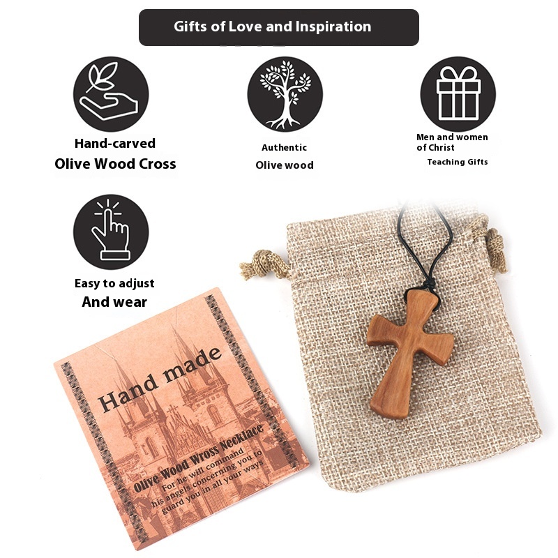 Hand-carved Tapered Wooden Cross Necklace OWood Cross Pendant Gift