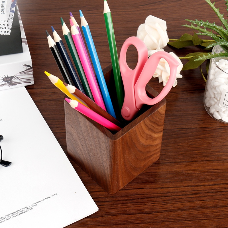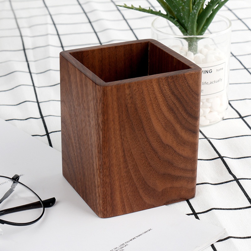 Creative Multifunctional Retro Style Wooden Pen Holder Office Supplies Storage Solid Wood Pen Holder With