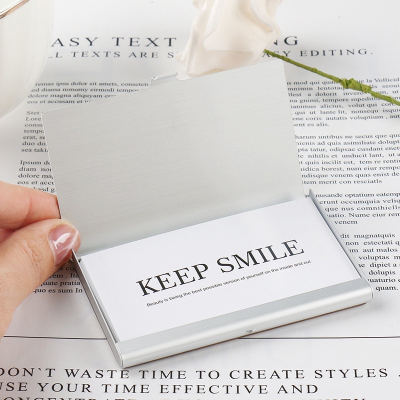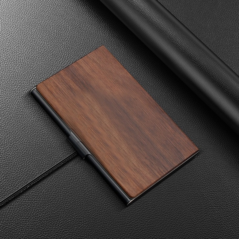 Aluminum Solid Wood Business Card Box Metal Business Card Holder Portable Creative Business Office Gift Can Print