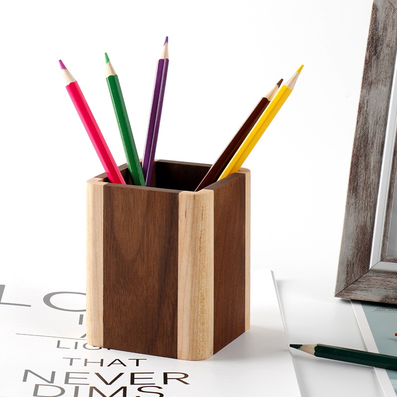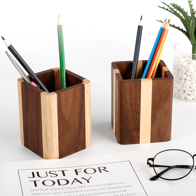 Nordic Black Walnut Solid Wood Pen Holder Color Matching Pencil Case Office Desktop Large Capacity Stationery Storage Box