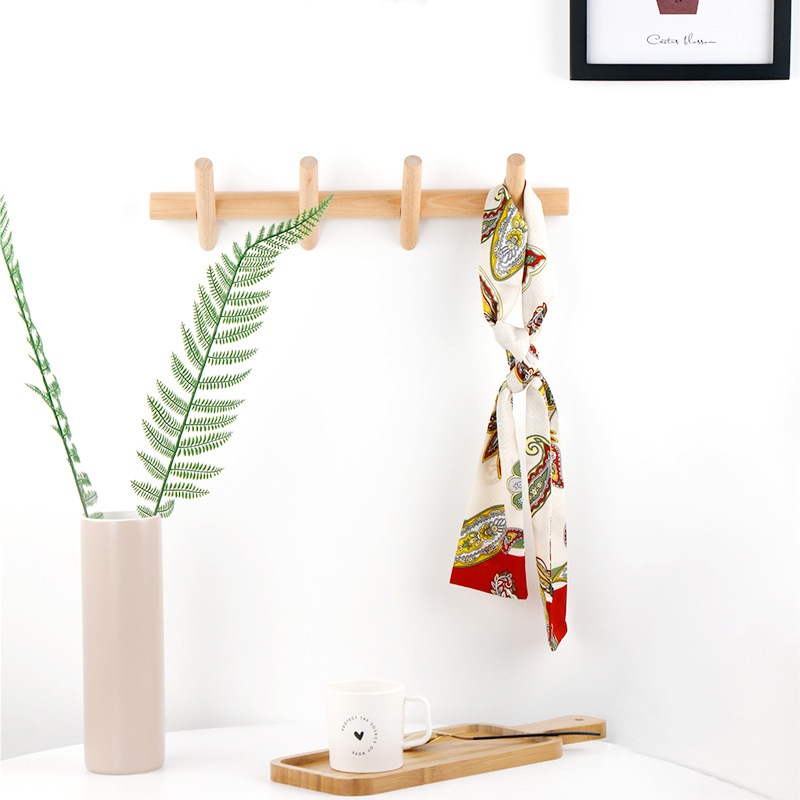 Nordic Beech Wood Hook Wall Round Rod Entrance Clothes Hook Creative Punch-free Wooden Coat Hook Wall Hanger