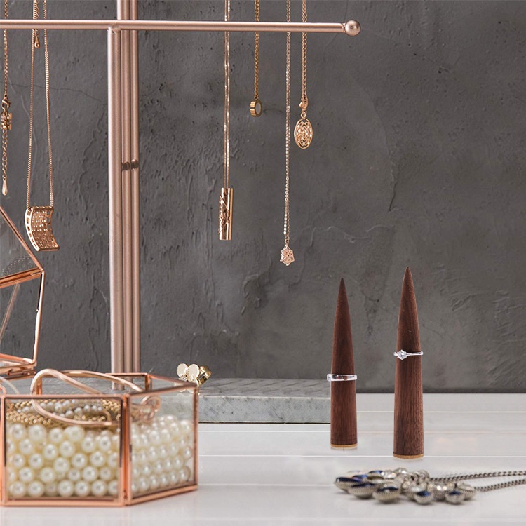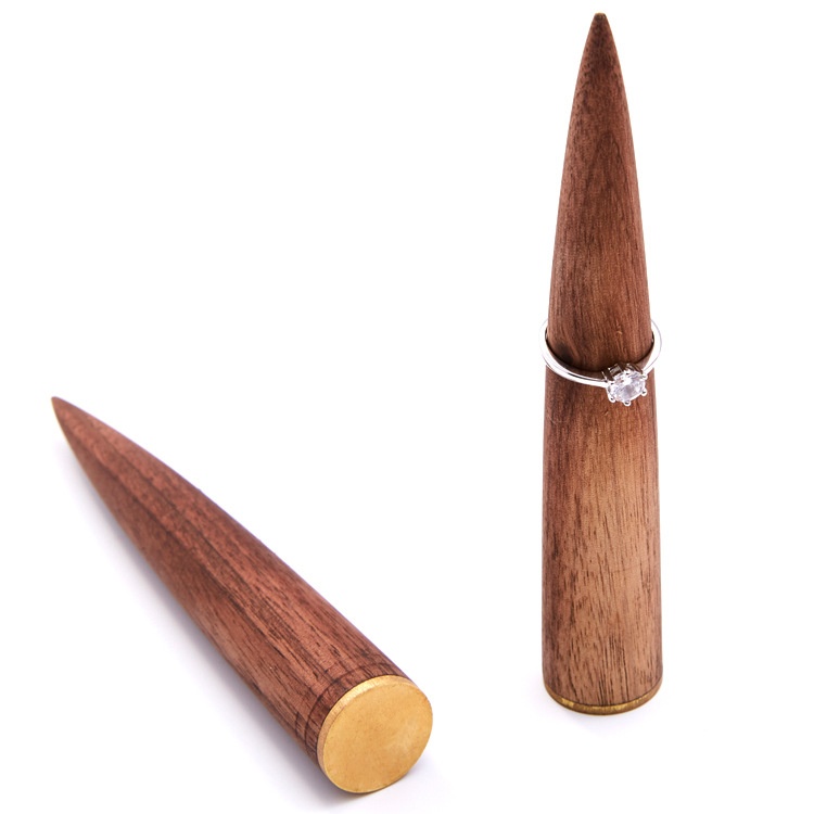 Wooden Brass Ring Holder Creative Cone-shaped Ring Holder Base Creative Desktop Small Crafts Props