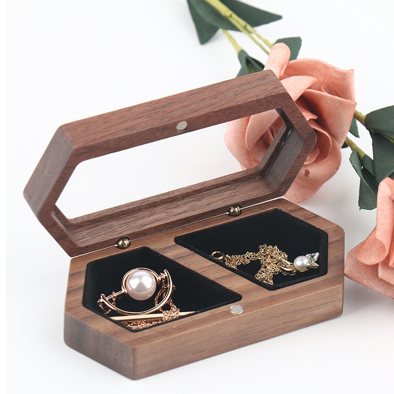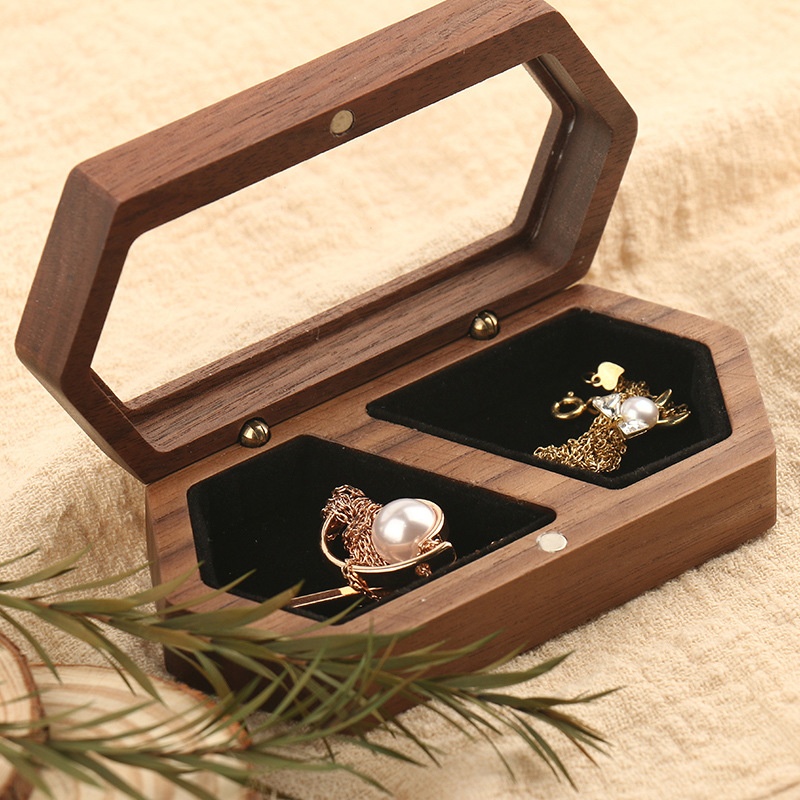 Black Walnut Wooden Jewelry Box Wedding Ring Proposal Ceremony Wooden Ring Box Desktop Storage Box