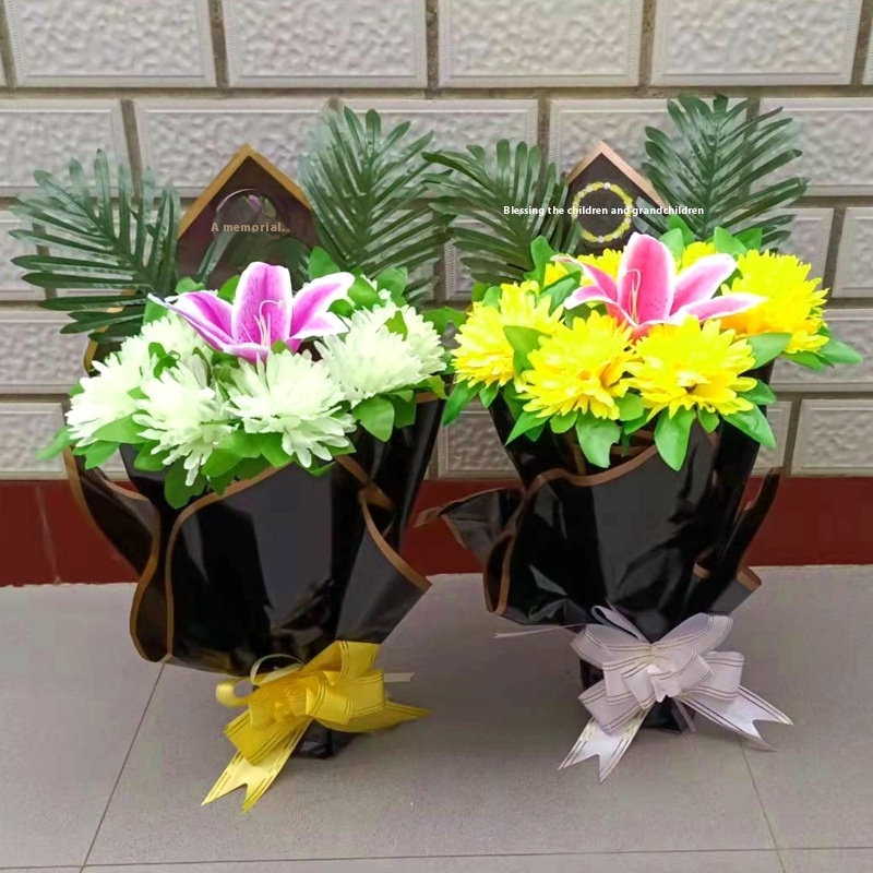 Tomb Sweeping Flowers For Qingming Festival,Simulated Bouquets,Holding Plastic Artificial Flowers,Cemetery Flowers,Sacrificial Supplies Flowers