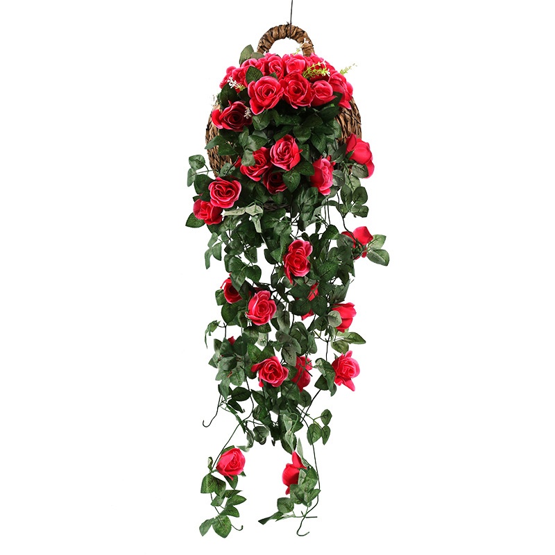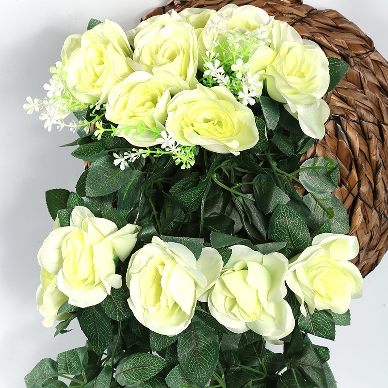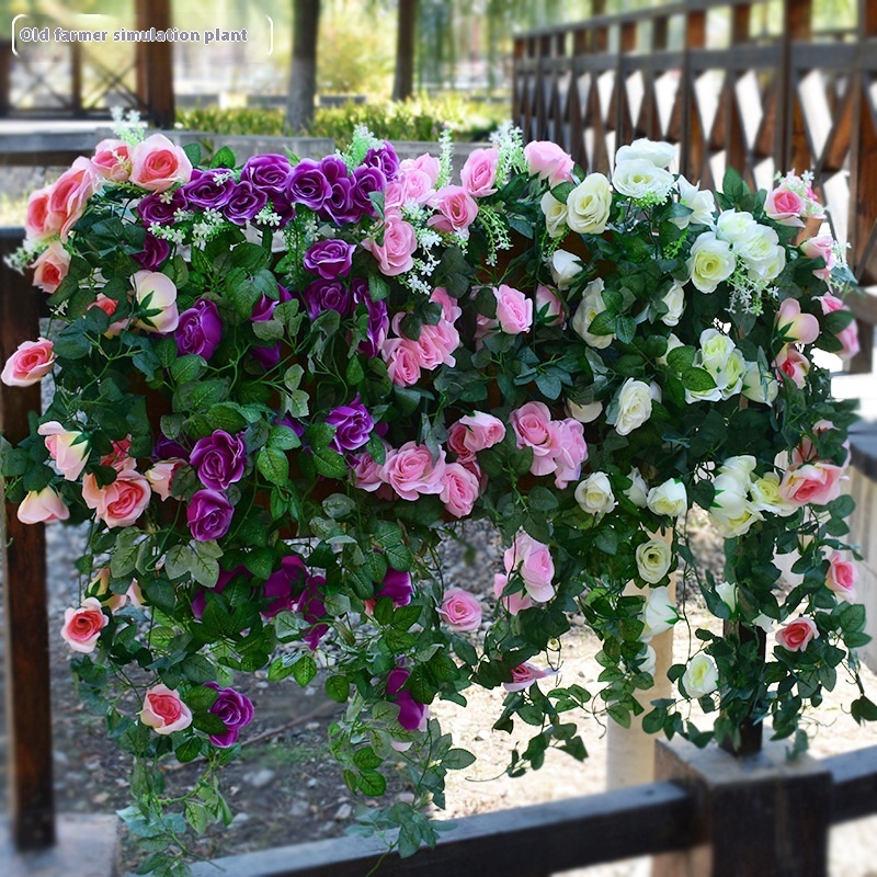 Simulation Rose Vine Wall Hanging Fake Flower Rattan Living Room Wall Decoration Green Plant Ceiling Indoor Pipe Wall Hanging Flower Art