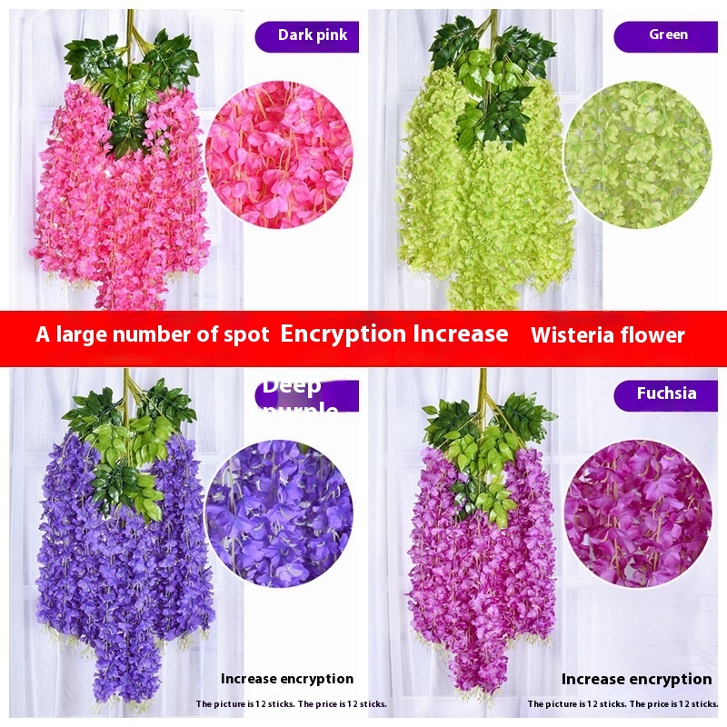 Simulation Wisteria Flower Ceiling Fake Flower Rattan Indoor Wedding Decoration Plastic Bean Flower Violet Hanging Vine Plant