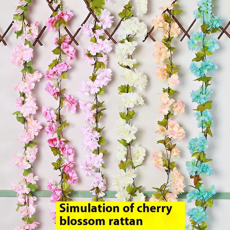 Simulation Cherry Blossom Rattan Air Conditioning Pipe Cover Rattan Chair Decoration Artificial Flower Rattan Wedding Scene Door Head Wall Decoration