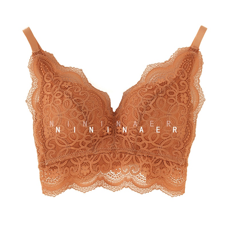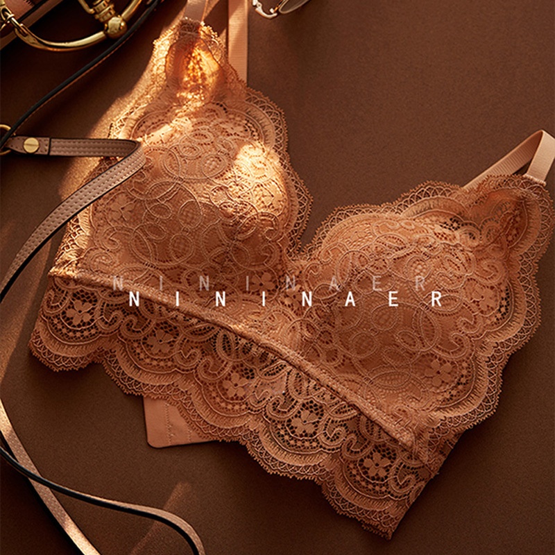 NININAERComfortable Non-empty Cup French Triangle Cup Lace Bra Small Chest Lift Gathered No Steel Ring Underwear Thin