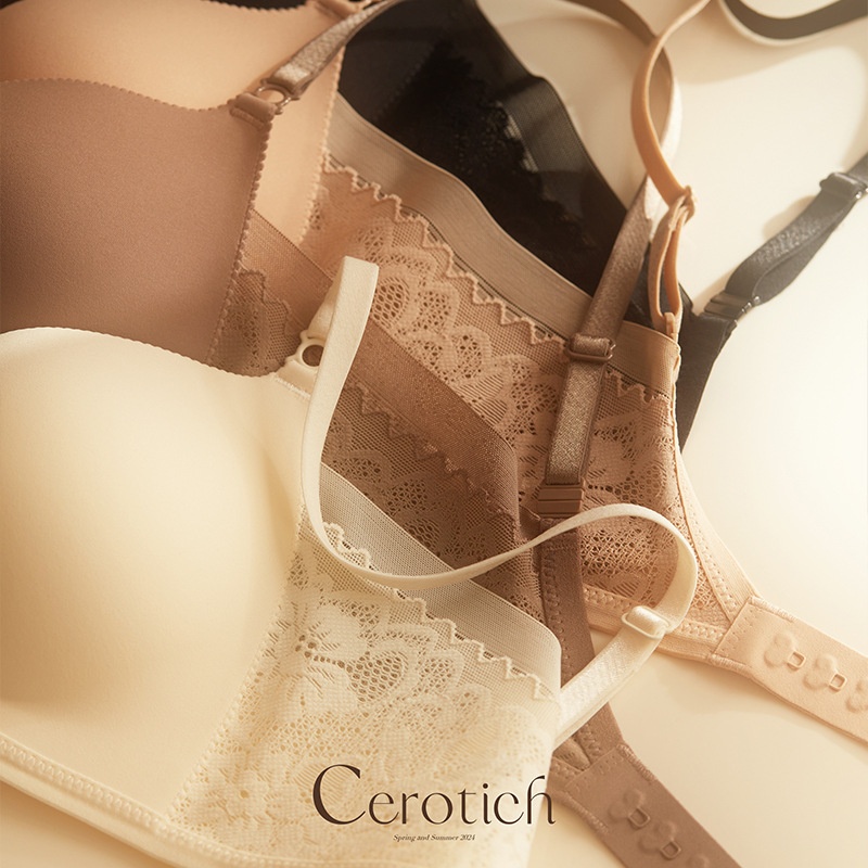 Cerotich Front Buckle Smooth Seamless Lace Underwear Small Chest Not Empty Cup Women's All-match No Steel Ring Gathered Bra