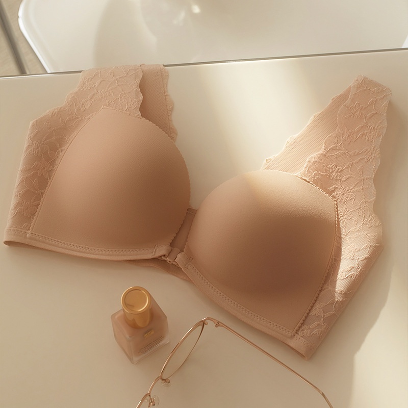One Button Up To CCup!Cerotich Lace Front Button Bra Small Chest Gathered Big Vest Seamless Bra