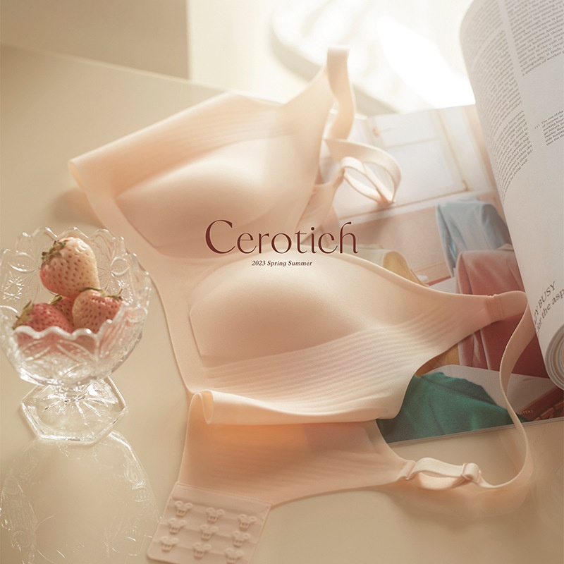 Cerotich Summer Thin Women's Underwear Without Steel Ring Breathable Rabbit Cup Bra Jelly Seamless Breast-collecting Bra