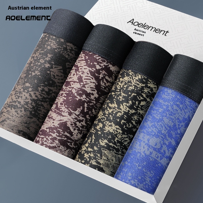 Men's Underwear Men4 Gift Boxes Camouflage Boxer Briefs Middle-aged And Young Breathable Boxer Briefs