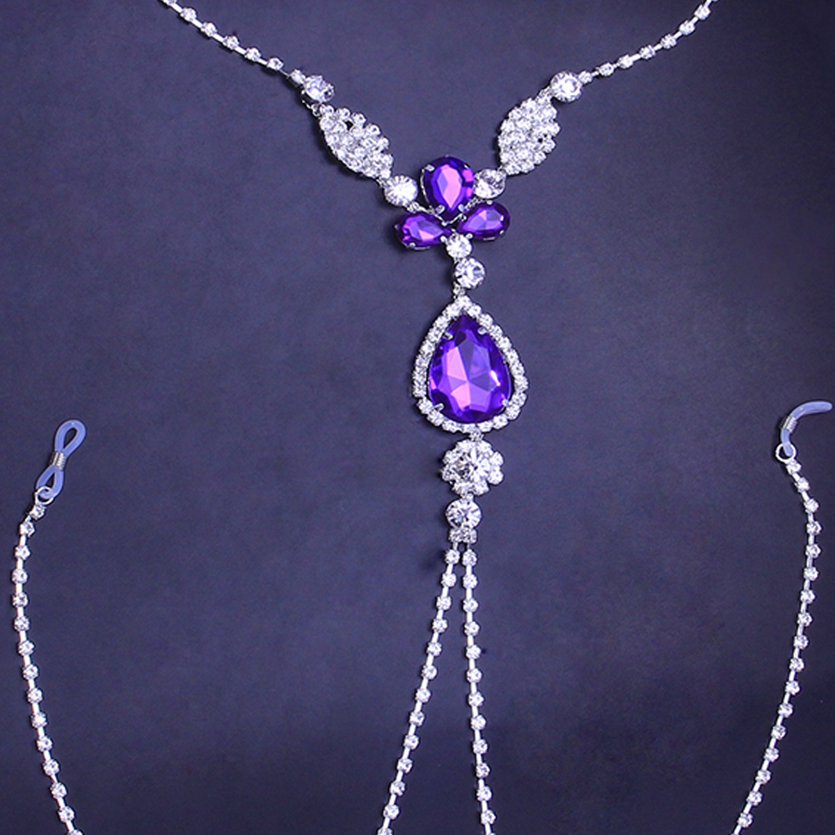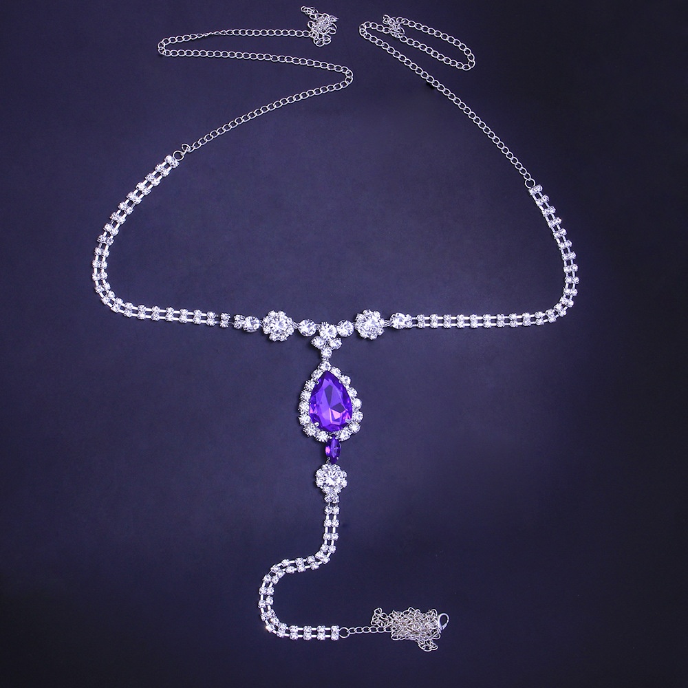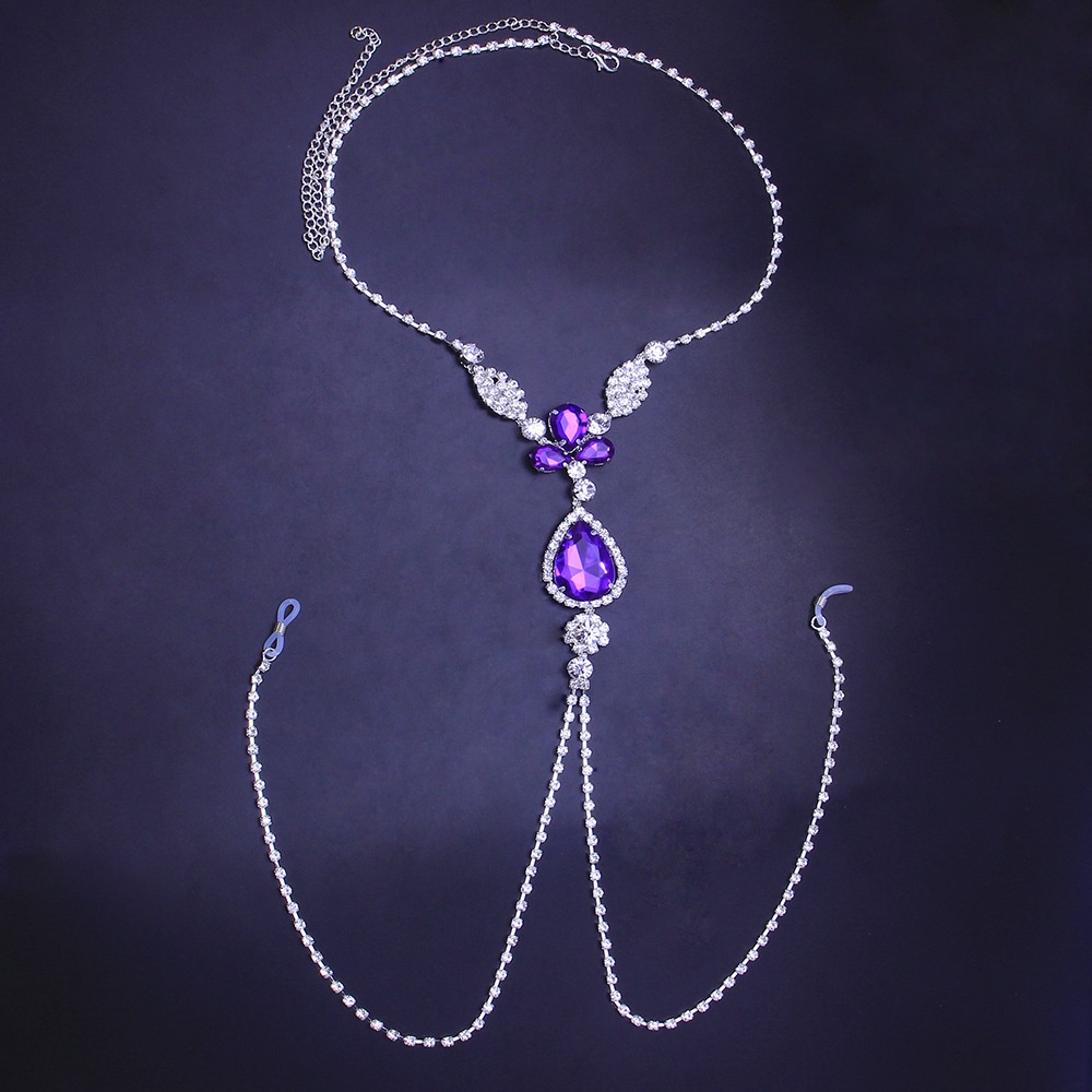European And American Purple Diamond Sexy Nipple Chain Fashion Nightclub Water Drop Shaped Rhinestone Body Chain European And American Body Chain