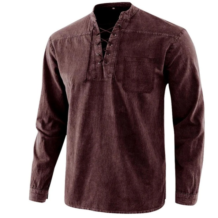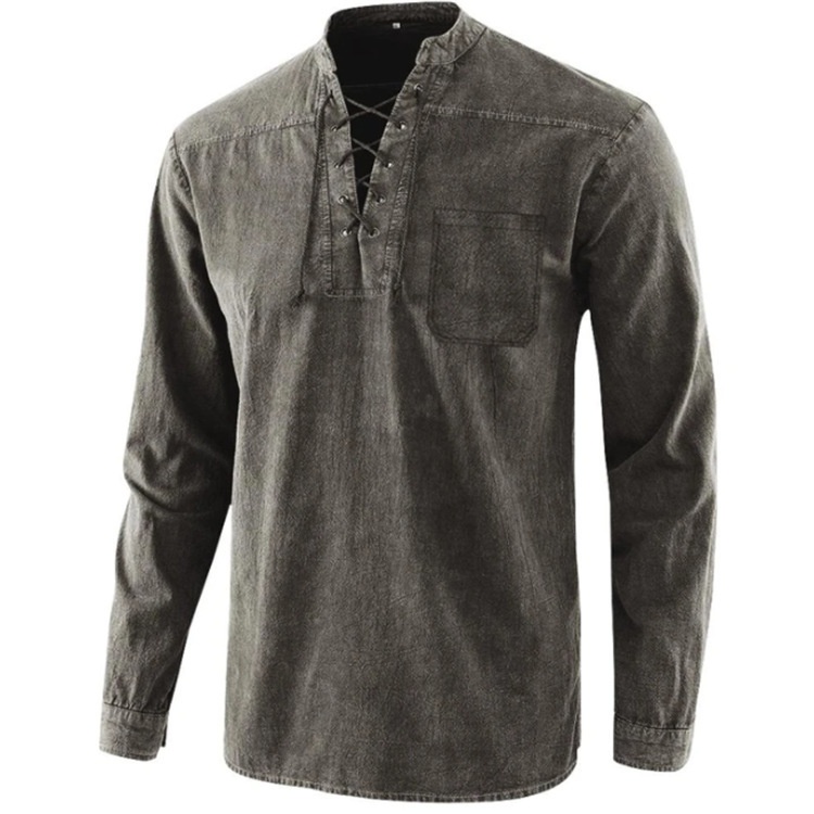 European And American Men's Solid Color Retro Lace-up Men's Tops Casual Shirts