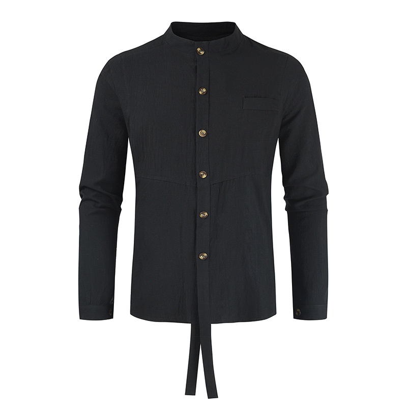 Spring Cotton And Linen Stand Collar Men's Men's Casual Loose Large Size Youth Long-sleeved Shirt