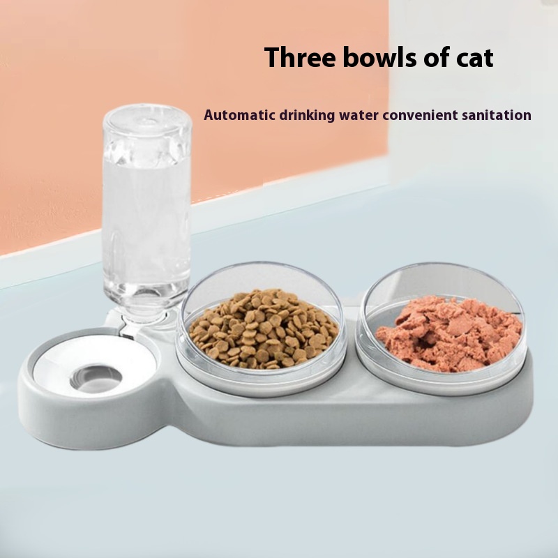 Dog Bowl Cat Bowl Pet Feeder Anti-tip Snail Three Bowl Automatic Water Dispenser Large Diameter Cat Bowl