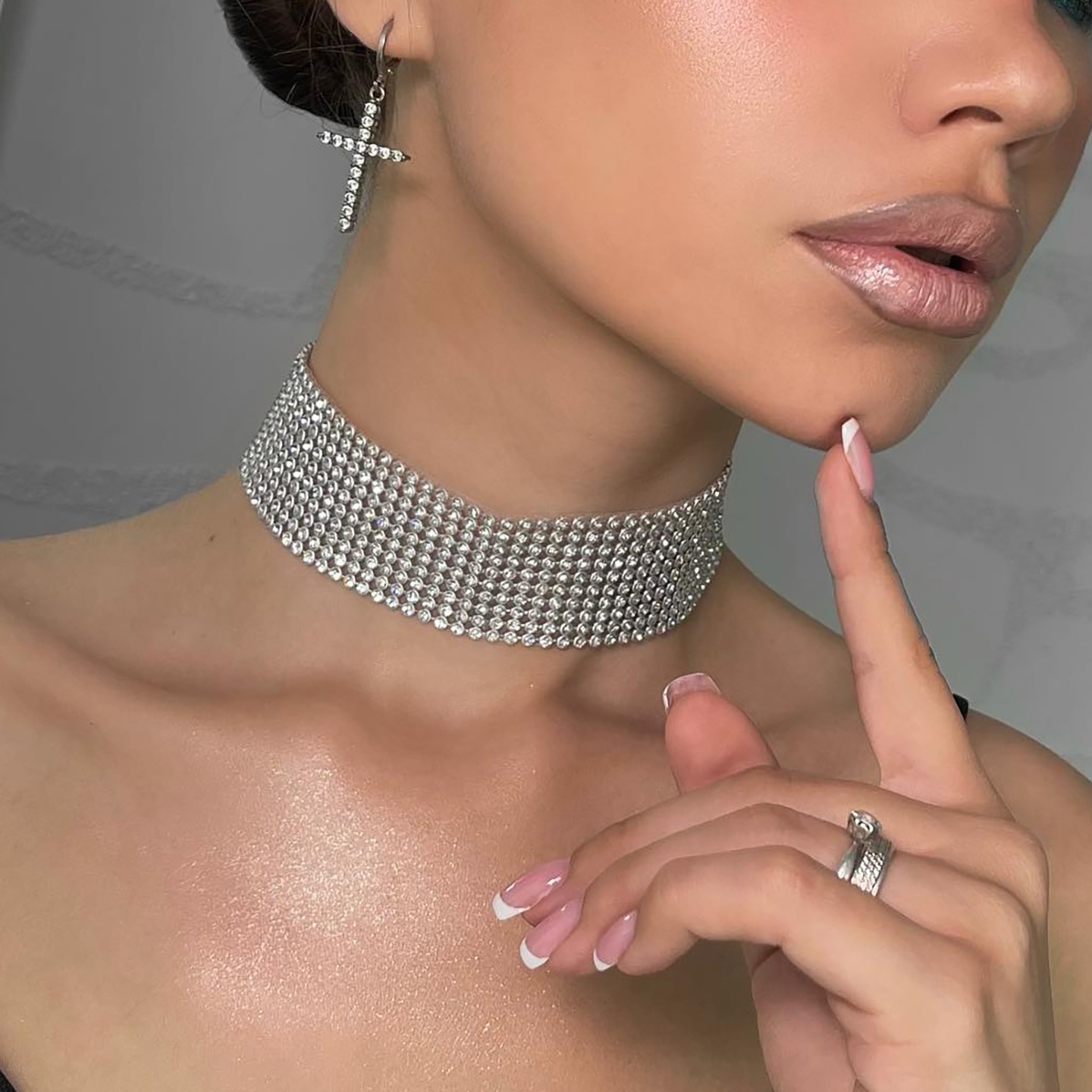 Hot-selling European And American Fashion Accessories,Super Flash Rhinestone Necklace,Short Necklace,Full Diamond Necklace