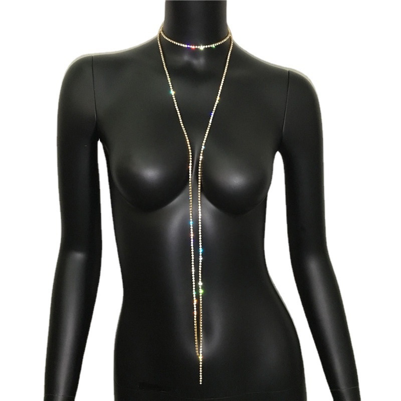 European And American Style Long Necklace With Rhinestones,Sparkling Diamond Creative And Elegant Necklace.