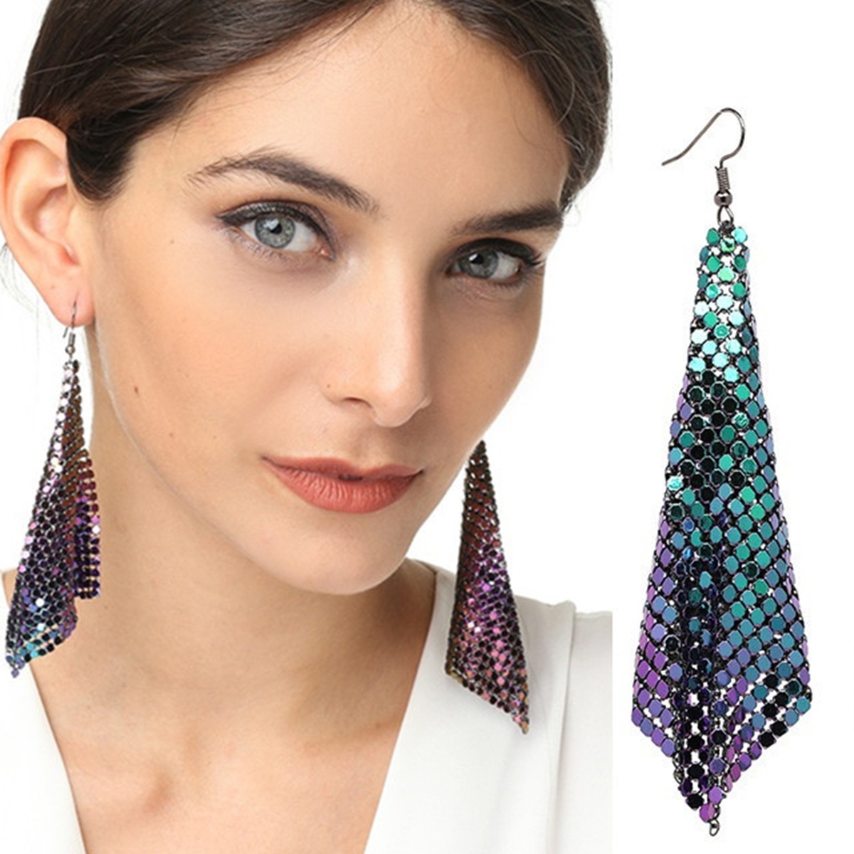 European And American Fashion Accessories All-match Geometric Square Metal Sequin Earringsy Personality Diamond Long Earrings