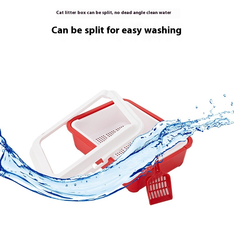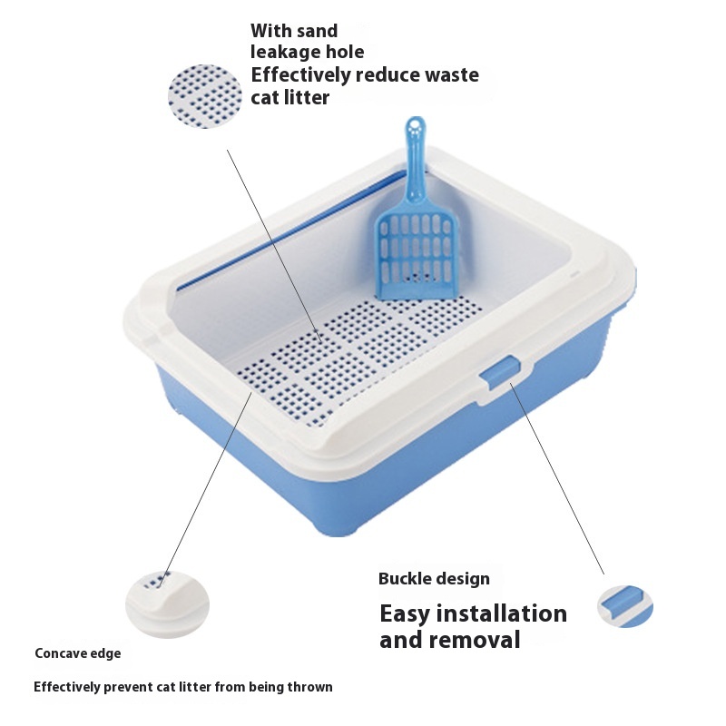 Cat Litter Box Semi-enclosed Cat Toilet Small Splash-proof With Grid Cat Litter Box Cat Cleaning Supplies With Shovel