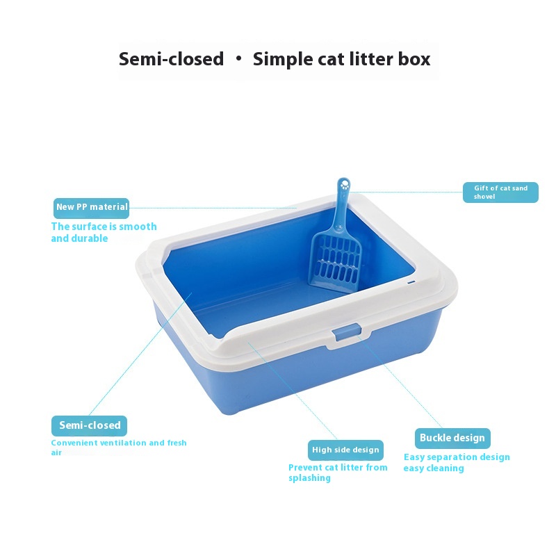 Semi-enclosed Cat Litter Box Small Splash-proof Cat Toilet Cat Cleaning Supplies Shit Pot With Shovel
