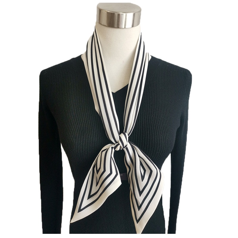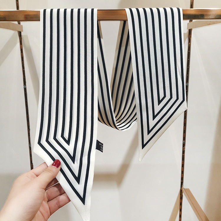 Simple Lines, Versatile Scarf, Double-layer Striped Commuter Simple Silk Crepe De Chine Scarf, Women's Small Ribbon Long Scarf