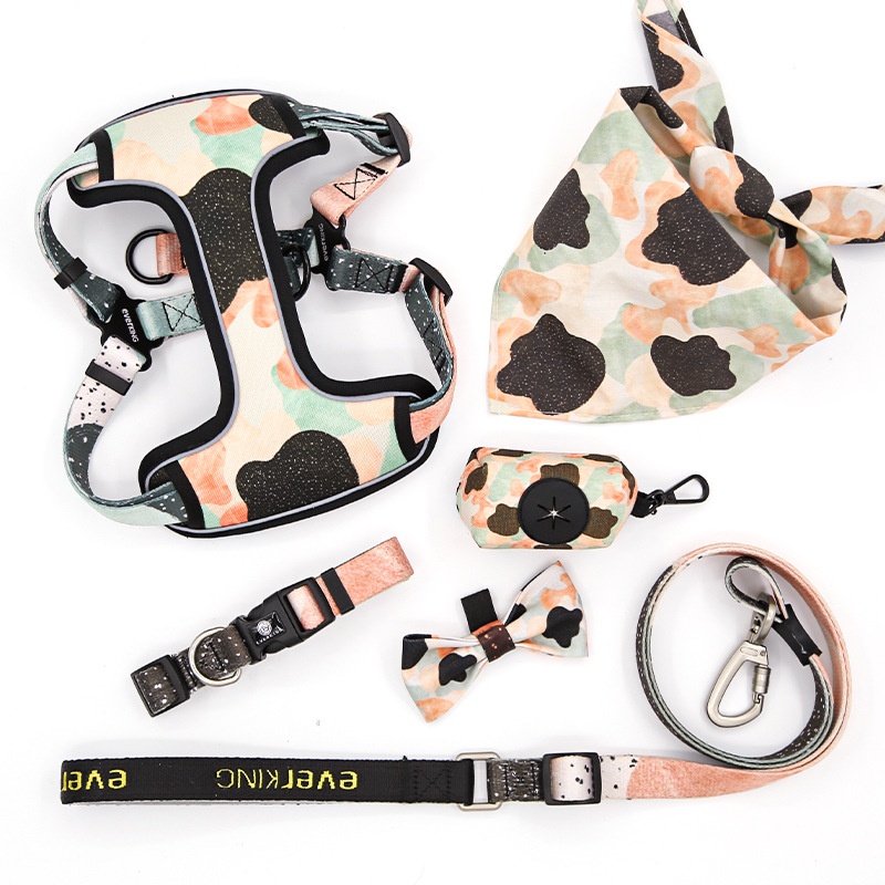 Printed Dog Harness Pet Traction Rope Reflective Chest Harness Set Small And Medium Dog Chest Harness Dog Chain