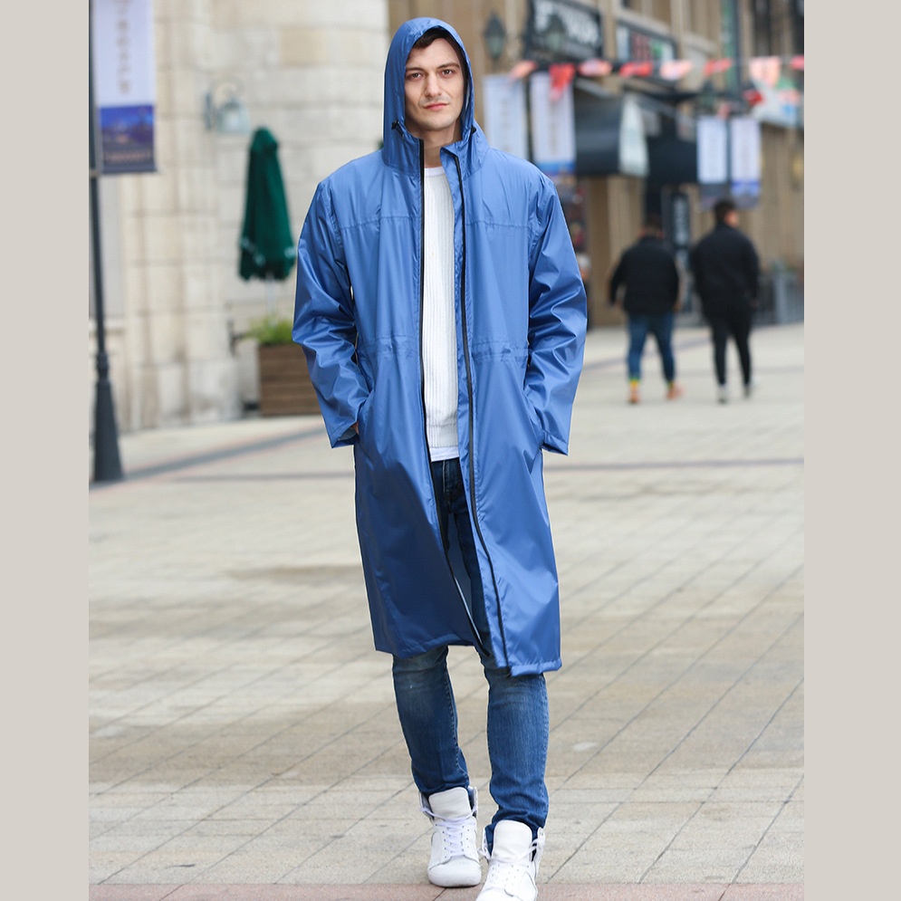 Polyester Fashion Adult Black Long One-Piece Raincoat Blue Pink Jacket Travel Cycling Waterproof Zipper Raincoat
