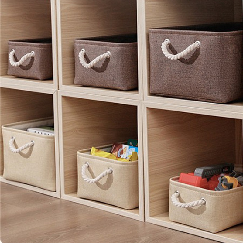 Linen Storage Basket With Portable Desktop Storage Basket Foldable Cosmetics Sundries Storage Box