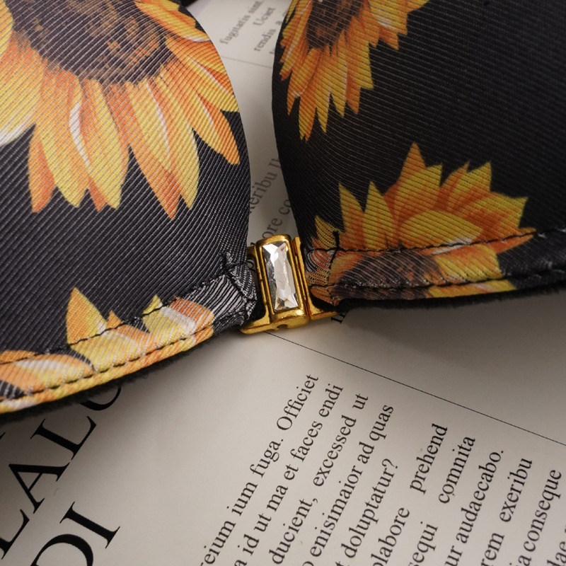 Front Buckle Sexy Underwear Set Lace Gathered With Steel Ring Young Girls Bra Medium Model Chrysanthemum Bra
