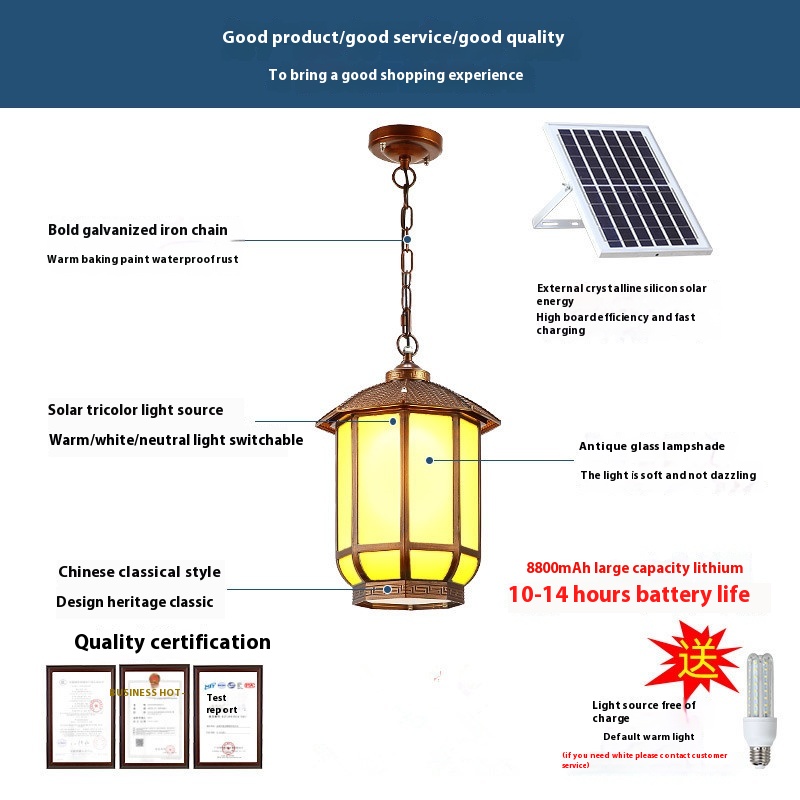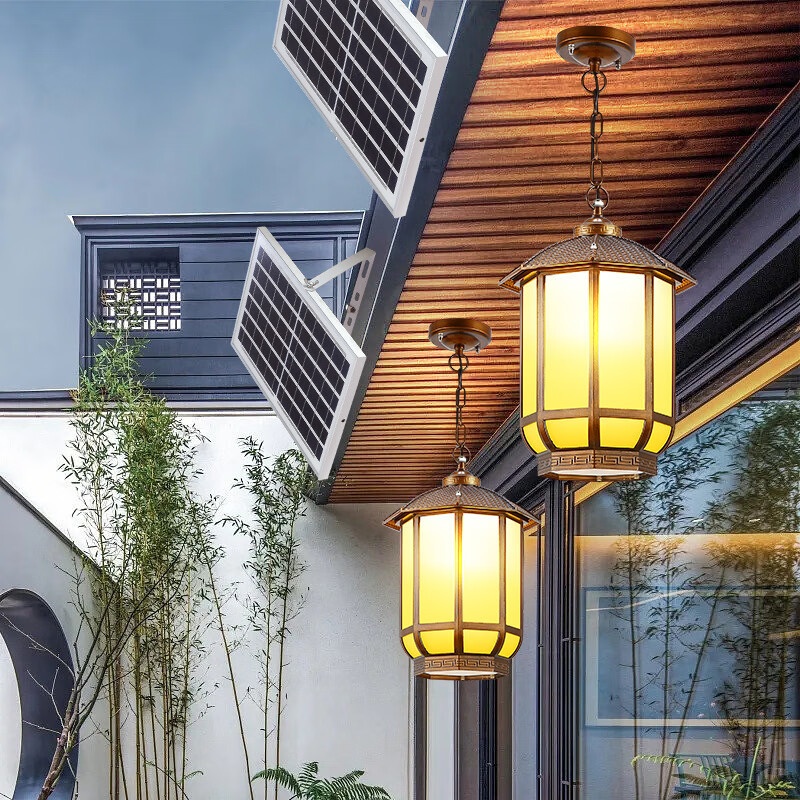 Outdoor Chandelier Waterproof Chinese Style Gallery Pavilion Villa Corridor Entrance Balcony Solar Eaves Garden Light